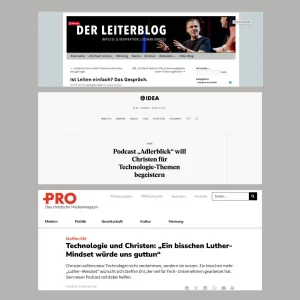 In den letzten Wochen hat der Adlerblick-Podcast in der christlichen Medienlandschaft einige Aufmerksamkeit erhalten. Gleich drei renommierte Nachrichtenplattformen, darunter IDEA, PRO Medienmagazin und der Leiterblog, haben